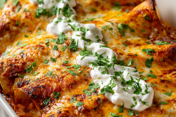 Pour the remaining enchilada sauce evenly over the rolled tortillas. Sprinkle generously with shredded cheese, making sure each enchilada is covered. Bake in a preheated oven at 375°F (190°C) for 20–25 minutes, or until the cheese is melted, bubbly, and slightly golden. Garnish with fresh cilantro before serving.