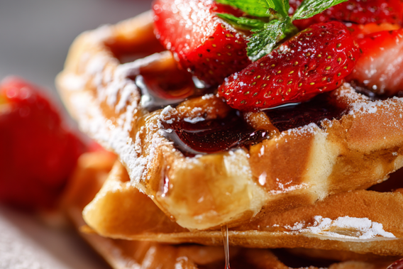 Belgian waffles are typically thicker and have deeper pockets than standard waffles. This allows them to hold more toppings like syrup, fruit, and whipped cream.