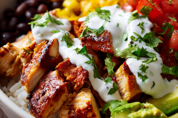 Long-grain white or brown rice works perfectly here. The rice serves as the hearty base of the bowl, soaking up all the savory juices from the chicken and toppings. I like to season it lightly with lime juice and a pinch of salt for extra flavor.