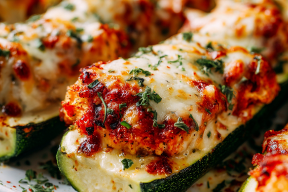 Zucchini: The star of the dish, zucchini acts as the perfect vessel for stuffing. Its mild flavor and sturdy yet tender flesh hold up well under the crispy chicken and cheese toppings while adding a nutritious low-carb base.