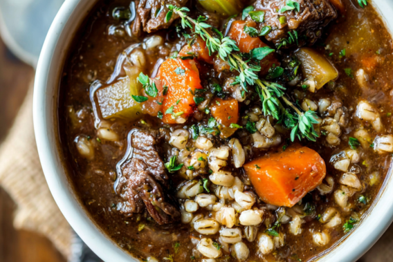 Barley adds a comforting chew and naturally thickens the soup as it cooks. Its nutty flavor pairs beautifully with beef and vegetables, making each spoonful feel complete.