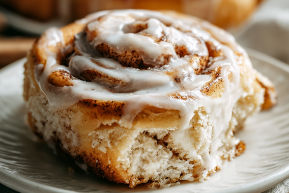 Let the cinnamon rolls cool slightly before adding the glaze so it melts gently without completely disappearing.