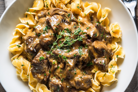 Sour cream: Sour cream gives stroganoff its signature finish—creamy, tangy, silky, and luxurious. Stirring it in at the end keeps it smooth and prevents curdling. It transforms the broth into that velvety sauce every stroganoff lover expects.